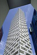 Der Delugan_Meissl Tower ist mit dem fast 100 Meter hohen Turm (34 Etagen) ein architektonisches Highlight. Der Tower überragt die benachbarten Gebäude im Süden und Westen um mindestens 20 Meter und bietet dadurch atemberaubende Ausblicke.